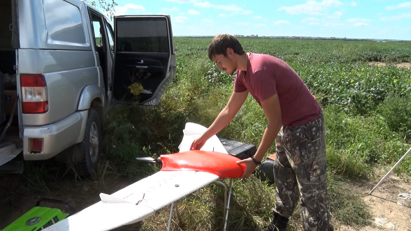 Место для приземления выбирают заранее, чтобы там не было сельхознасаждений и других препятствий. Предстартовая подготовка также включает осмотр двух камер: одна работает в режиме обычной съемки, другая — в инфракрасном.