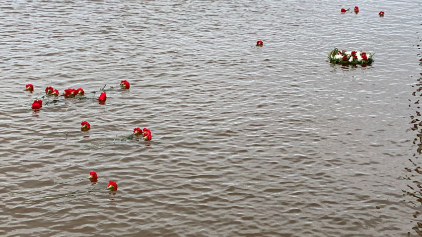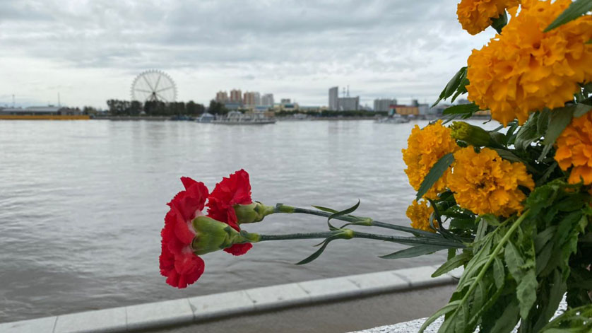 Праздничные акции в честь 75-летия со дня окончания Второй мировой войны проходят в Благовещенске с самого утра: на гигантский флагшток подняли российский флаг, по Амуру прошел парад кораблей, цветы и венки в память о погибших бойцах пустили по воде, а прохожим раздали муаровые ленты — такие же, как на медалях за победу над Японией.