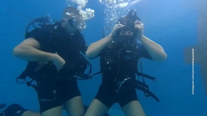 Тренировка проходила в бассейне. Это одно из заданий экзамена для подтверждения допуска к погружениям.
