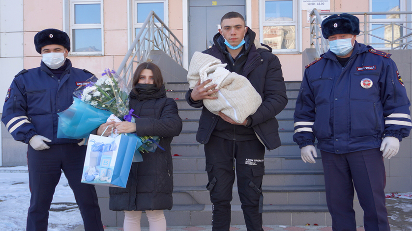 У амурчанки родился здоровый мальчик, которого назвали Кириллом. На выписку из роддома приехали и оказавшие помощь сотрудники ГИБДД. Они поздравили молодую семью с появлением малыша на свет и сделали им подарок.