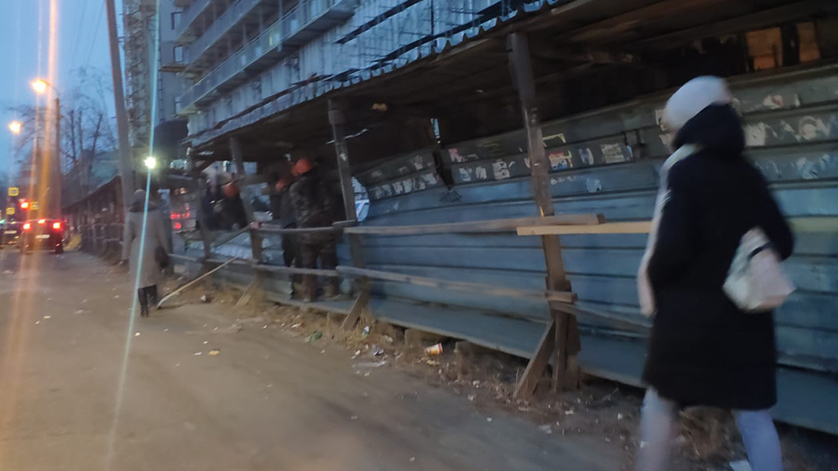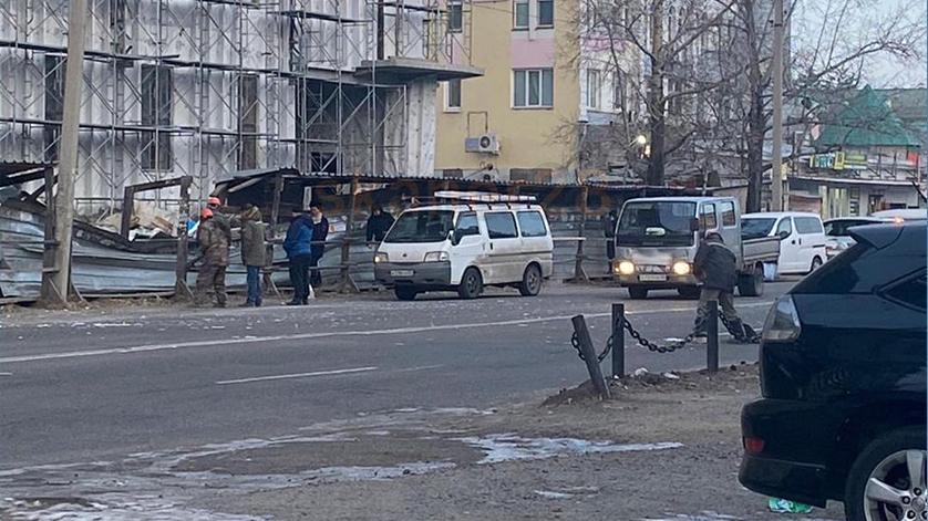 В центре Благовещенска в районе центрального рынка со строительного крана сорвался груз со стеклопакетами. Он разрушил крышу пешеходной зоны и упал на тротуар. По предварительным данным, пострадал один автомобиль.