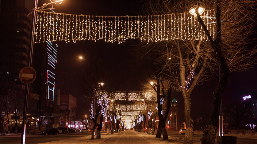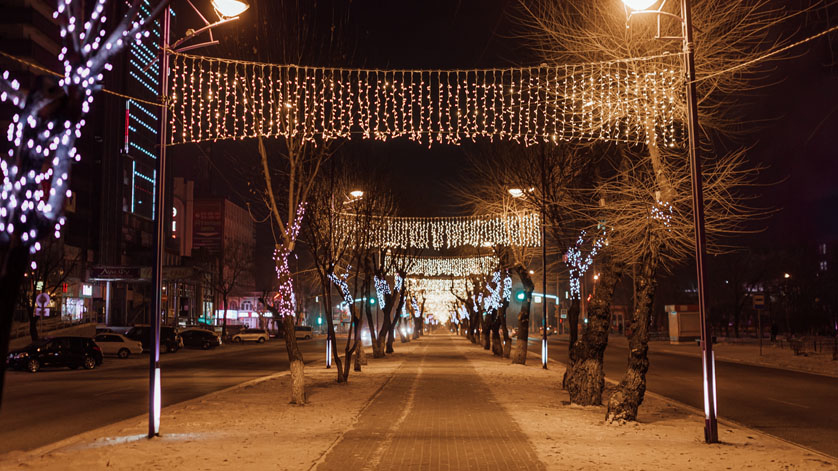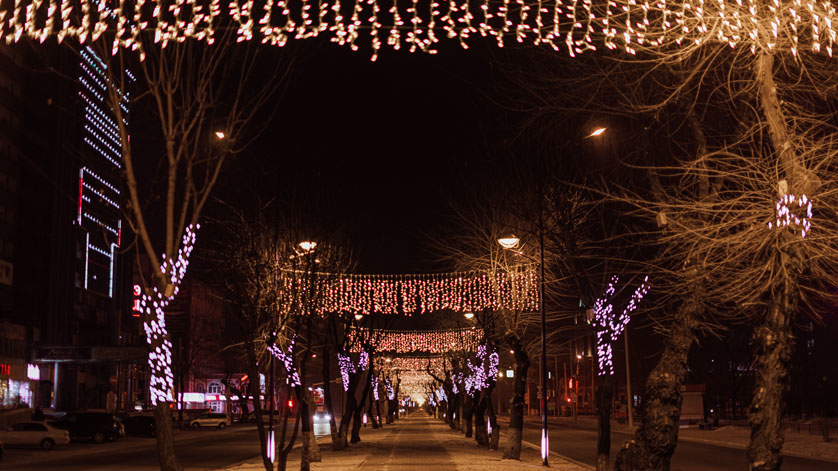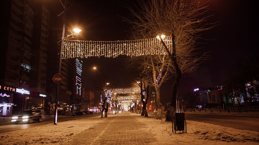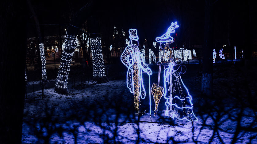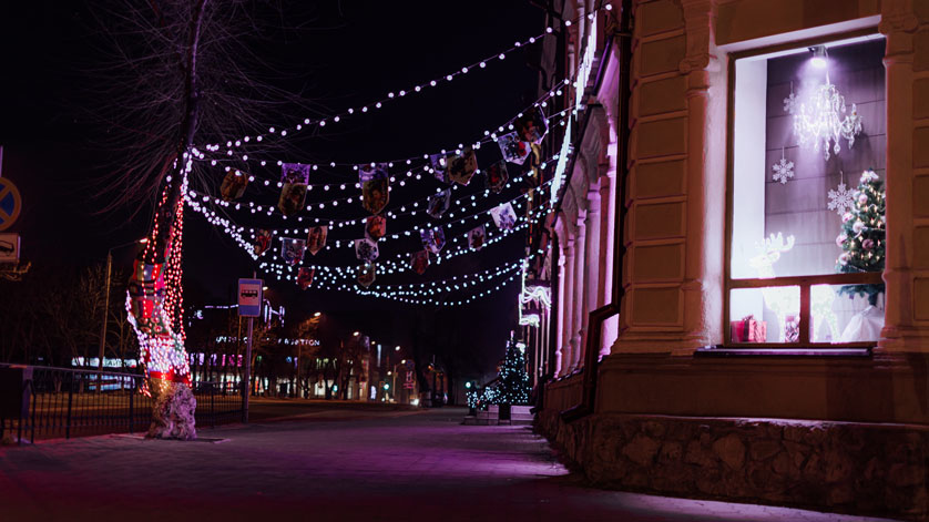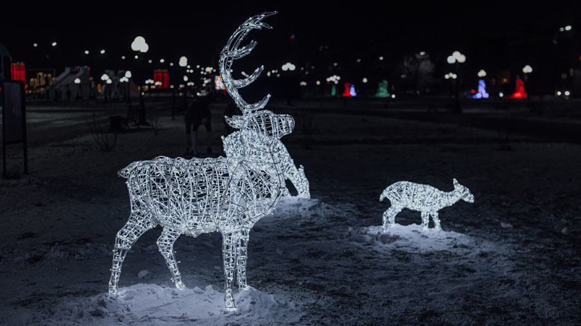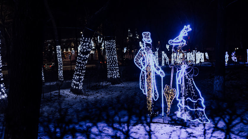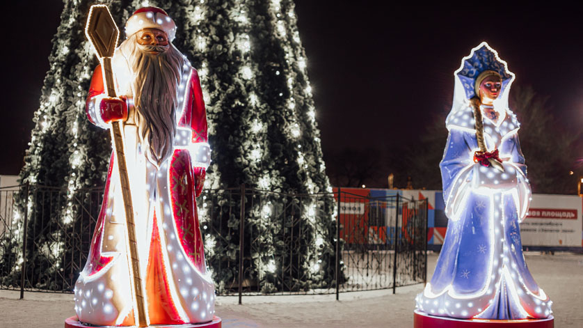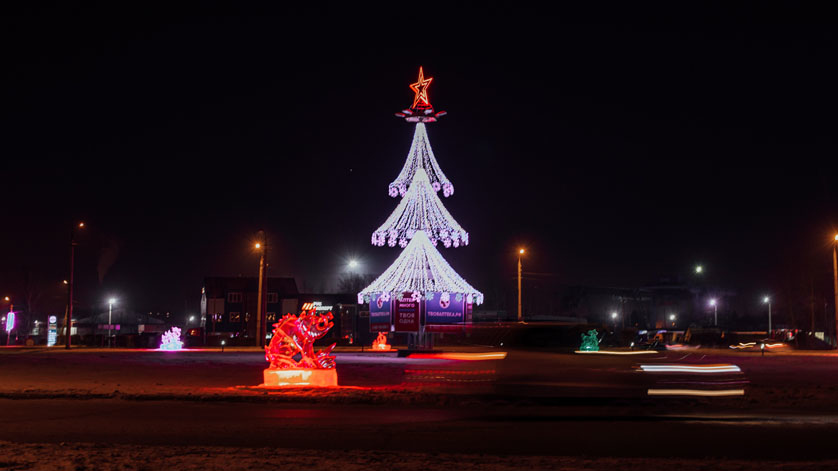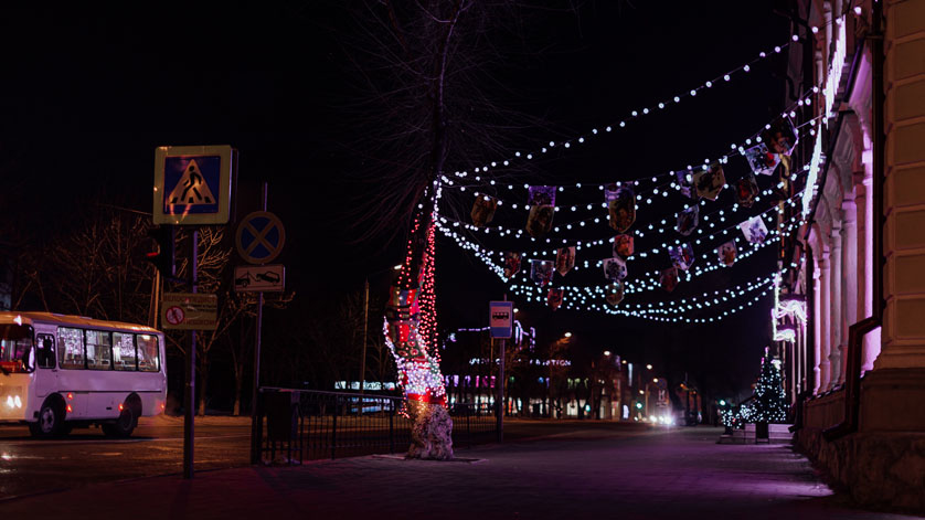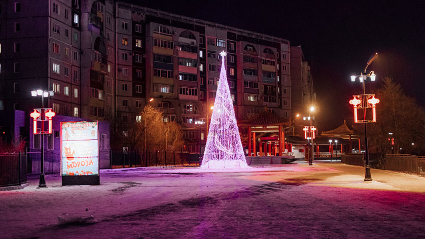 Центральную площадь Благовещенска украсили арт-объекты, традиционная елка и ледовые фигуры. Через дорогу впервые установили праздничную арку. Рядом с зданием ЦЭВа создают новогоднее настроение украшенные деревья и светящиеся танцующие фигуры. Подсвеченные ледовые скульптуры украсили кольцевые развязки на Калинина и Театральной. Праздничное настроение царит и в сквере у ТЦ «От и До», а также в парке «Дружба». А впрочем, предлагаем вам самим насладиться видами областной столицы.