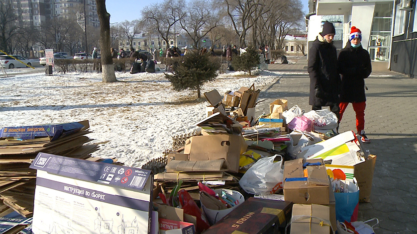 Несколько часов — и двухсотлитровые мешки доверху заполняются отходами. Несмотря на мороз, с каждым разом акция «Раздельный сбор» привлекает всё больше людей. Раньше, рассказывает Мария Силохина, она просто сортировала мусор. Посчитав, сколько тратит денег на пакеты, которые потом годами будут гнить на свалке, приобрела авоську.