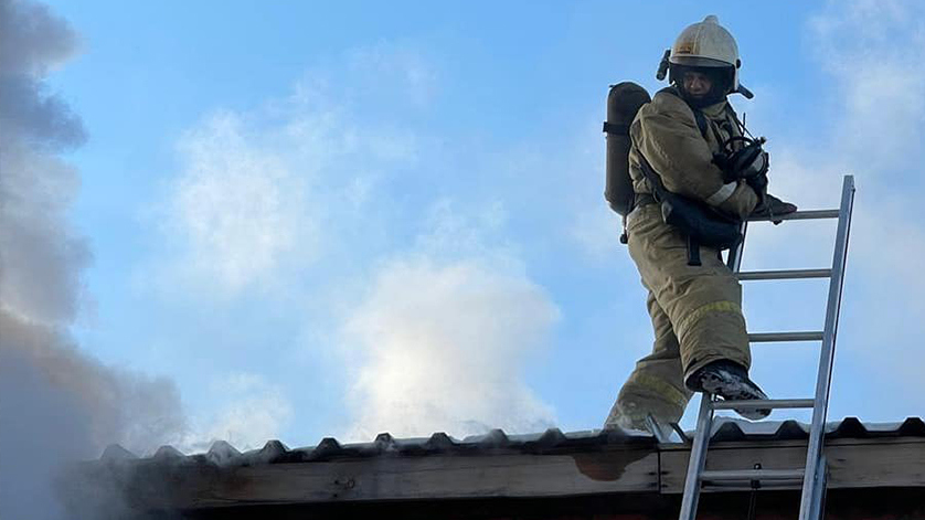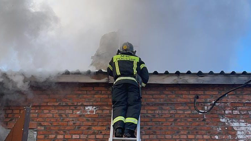 Пожар на КПП. По улице 50-летия Октября горит ангар
