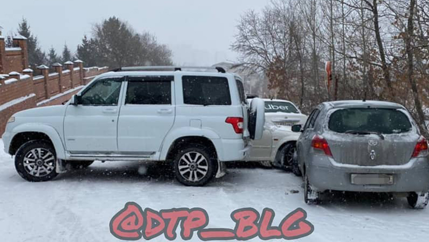 Еще через некоторое время с ними столкнулся рулевой отечественного внедорожника UAZ Patriot и японской малолитражки Toyota Vitz. Таким образом на выезде с улицы Дорожников на Игнатьевское шоссе скопилось уже 5 автомобилей.
