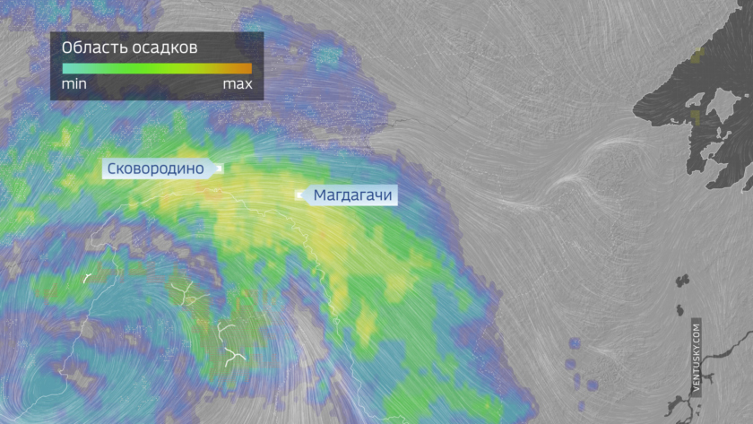 Главные погодные события развиваются во вторник, в момент наибольшей активности циклонического вихря. Основное количество осадков уже в который раз достается северо-западным районам области и долине Амура на территории Сковородинского, Магдагачинского и Шимановского районов. Более того, местами по Сковородинскому, Тындинскому и Зейскому районам осадки идут и в виде майского мокрого снега.