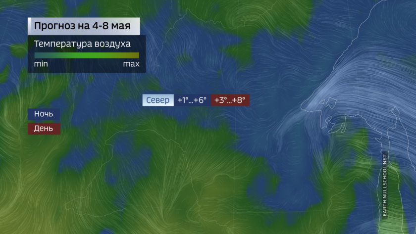 Что касается температуры воздуха, то она не будет высокой. С учетом сплошной облачности и осадков, температура ночью на севере области от 1 до 6 градусов тепла, при прояснении небольшой минус. Днем при тех же условиях воздух сильно не погреется, максимальные температуры 3-8 градусов тепла.