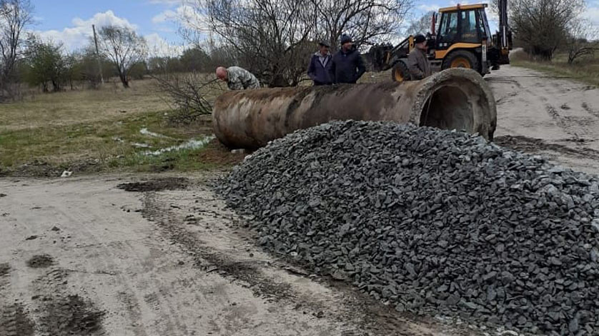 Песком и гравием отсыпают поврежденные отрезки трасс в Белогорском округе, а в Октябрьском районе восстанавливают трубный проезд в Переяславке.