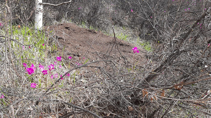 «Около 20 лет я наблюдаю, как медведи периодически раскапывают муравейники в этом месте, — рассказала зоолог Зейского заповедника Елена Красикова, — если муравейники разрушены как в этот раз, в мае, когда уже тепло, то оставшиеся муравьи начинают восстанавливать свои жилища. Если же медведь проснулся рано, и разорил муравейник еще по снегу, то, к сожалению, муравьи погибают. Потом, в течение нескольких лет муравейники вырастают либо на том же месте, либо поодаль появляются новые маленькие муравейники, муравьиный городок разрастается, пока его снова не разорит косолапый».