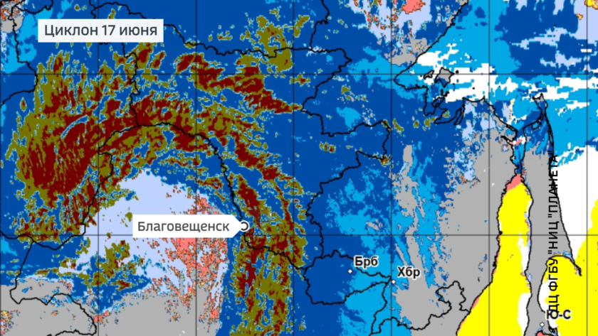Раскручивая свой центр над Шилкой и Аргунью, в среду циклон отправил в наступление на Приамурье систему активных атмосферных фронтов, которые в первые же сутки оставили местами по долине Амура от Сковородинского до Шимановского районов количество дождей в 1,5-2 раза превышающее декадные нормы.