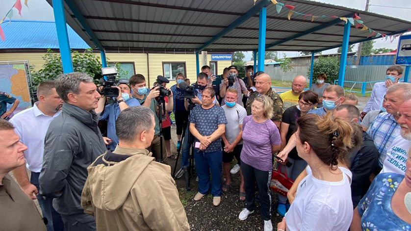 Вместе с ним в область прибыл и глава Минвостокразвития Алексей Чекунков. Первой точкой маршрута стал оперативный штаб в селе Игнатьево, который располагается в Доме культуры. Полпред президента в Дальневосточном федеральном округе проверил работу комиссий, которые принимают заявления на выплаты, ремонт печей и просушку домов. Затем он встретился с подтопленцами, узнал как осуществляются выплаты и с какими трудностями они столкнулись.
