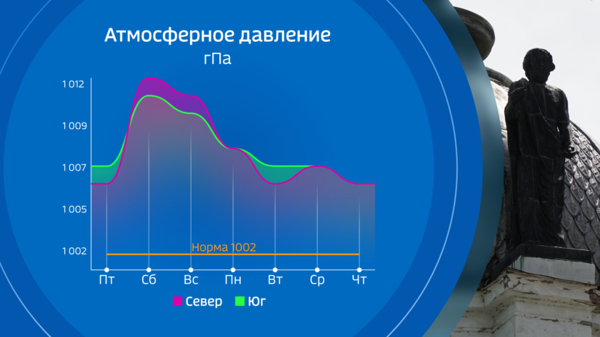 Что касается атмосферного давления, то его фон останется высоким. В ночь на понедельник, с приближением циклона, давление начнет медленно понижаться.