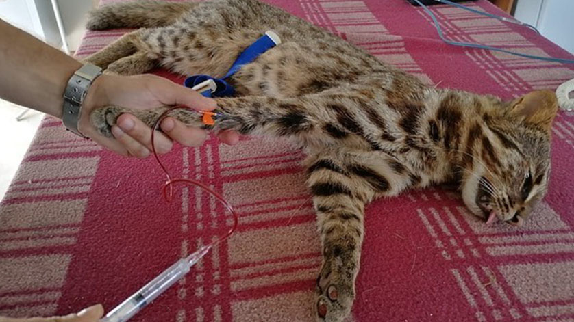 Кот, занесенный в Красную книгу прошел ветеринарный осмотр и после курса реабилитации лесного пациента выпустили в естественную среду обитания.