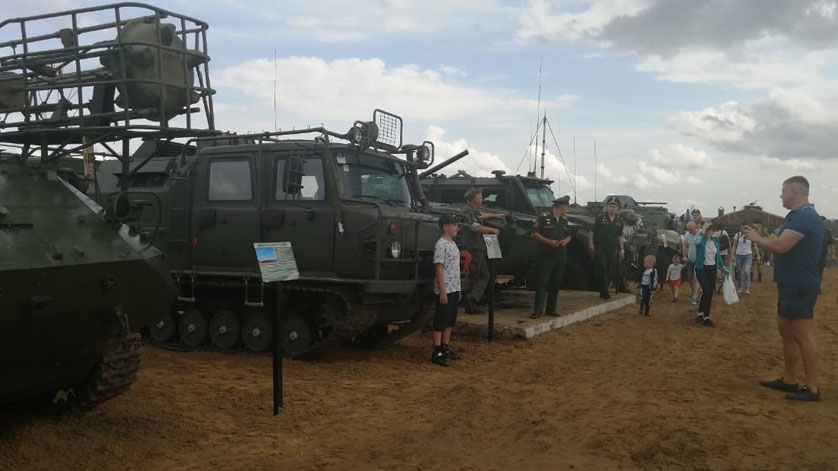 Посетители смогли оценить 70 единиц боевой техники и вооружения, включая как исторические экспонаты времён Великой Отечественной войны, так и современные образцы. Таким образом, наряду с ветеранами военной техники — танком Т-34-85, миномётом «Катюша», «полуторкой» и мотоциклами, побывавшими на параде 9 мая — демонстрировались и непотопляемый вездеход «Алеут», бронеавтомобили «Тигр» и «Тайфун-К», танки со специальной системой противоминного разграждения, системы связи, образцы авиационного вооружения, включая авиабомбы; зенитно-ракетные системы «Бук» и «Оса».