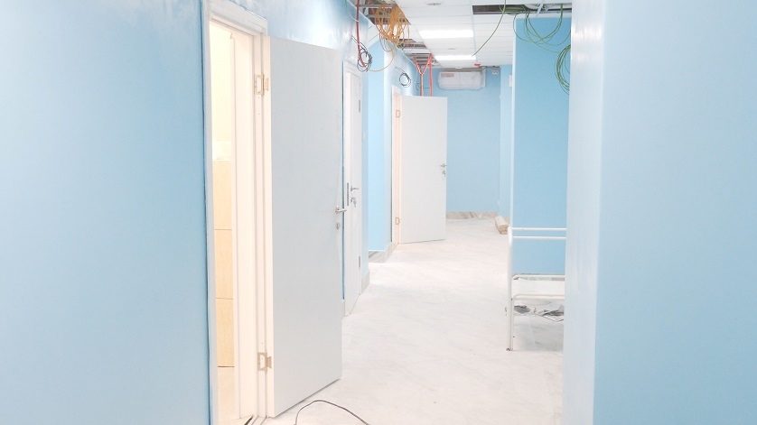 Капитальный ремонт поликлиники начался в декабре 2020 года. Уже смонтированы воздуховод, вентиляционные установки, внутренние перегородки, выполнена стяжка пола, устройство коммуникаций.