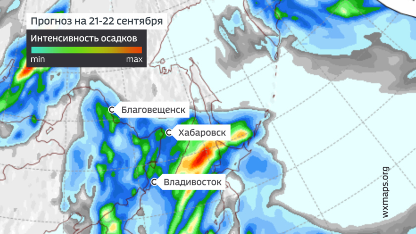 Много осадков обещает достаться югу Хабаровского края, а также Еврейской автономии. Зона так называемых выносных осадков может достичь и территории нашей области.