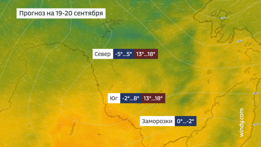 Температуры ночью на севере области составят 0+5, местами до -5. По югу 4-8 градусов тепла, в пониженных местах около 0 градусов в воздухе и заморозки на поверхности почвы до минус 2 градусов. Что касается дневных температур, то в субботу по северу 9+14, местами около +5, по югу 11+16 градусов.