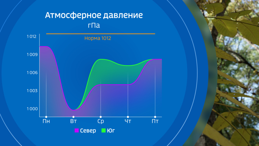 Что касается атмосферного давления, то циклону удалось существенно снизить его значения с повышенных до близких к норме. Во вторник давление будет падать. Во второй половине недели начнется его постепенный рост.