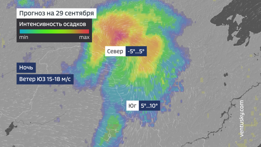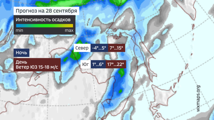 Циклон продолжит свой путь на северо-восток и в среду днем Приамурье окажется в его тыловой части. Центр циклона уже будет кружить над восточными районами Якутии. Ночь на вторник в плане погоды будет очень неспокойной. На усиливающихся термобарических контрастах сохранятся высокие скорости ветра в порывах до 15-18 м/с. Осадки пройдут в большинстве районов. На юге в виде дождя, на севере — дождя, местами с мокрым снегом. Температура на севере области составят от +5 до — 5, на юге 5+10 градусов тепла.