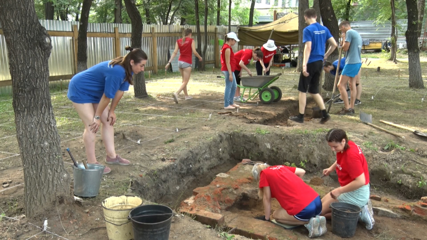 Рабочие нашли кирпичный склеп — его верхнюю плиту задел ковш экскаватора. По благословению архиепископа Лукиана была сформирована комиссия для исследования захоронения. В склепе обнаружили гроб с останками женщины в монашеском облачении. На основании исторических источников установлено, что это останки игуменьи Палладии — первой настоятельницы Богородично-Албазинского монастыря, располагавшегося до революции на территории возводимого сейчас одноименного храма.