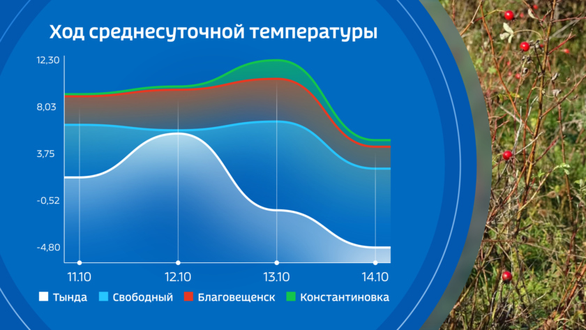 Со вторника из-за трансформации воздушных масс, связанной с прохождением глубоко циклона над территорией Якутии, в Приамурье холод немного отступит. Дневные температуры на севере области будут повышаться до 0 плюс 5 градусов, в южных районах октябрьское солнце обещает прогреть воздух до плюс 3-8 градусов.