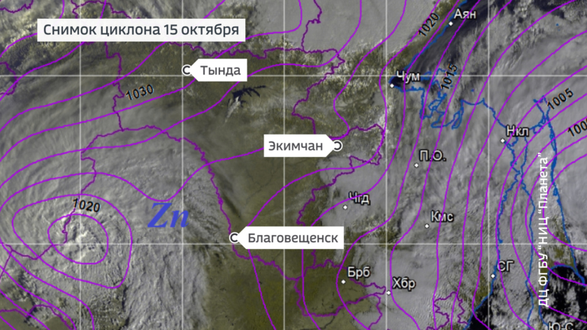 В субботу на всем юге и местами в северных районах Приамурья ожидаются осадки в виде мокрого снега и снега в количестве от 1 до 7 мм за 12 часов, при декадных нормах 8-10 мм. Не исключены гололедные явления на дорогах. Циклон имеет очень большую скорость смещения и уже к вечеру субботы его приземный центр окажется над Татарским проливом. Поэтому ожидаемая погода будет ветреной. Над нашей областью порывы северо-западного ветра будут достигать 15-20 м/сек.