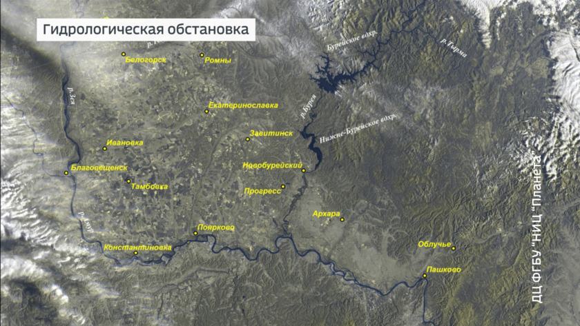 На территории области все реки находятся в коренных руслах, но высокая водность крупных рек сохраняется. Так, Амур выше нормы на 1,5-2 метра, Зея — до 1,5 метров. Селемджа в нижнем течении выше нормы до 1 метра. В связи с понижением температурного фона на реках Тындинского и Селемджинского районов отмечаются первые ледовые явления — забереги и шугоход.