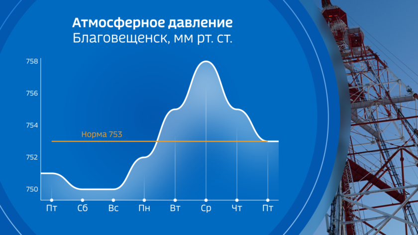 Атмосферное давление в областной столице немного ниже нормального. Со вторника, с усилением влияния антициклона, ожидается его рост, а к концу следующей недели фон атмосферного давления будет в пределах нормального.