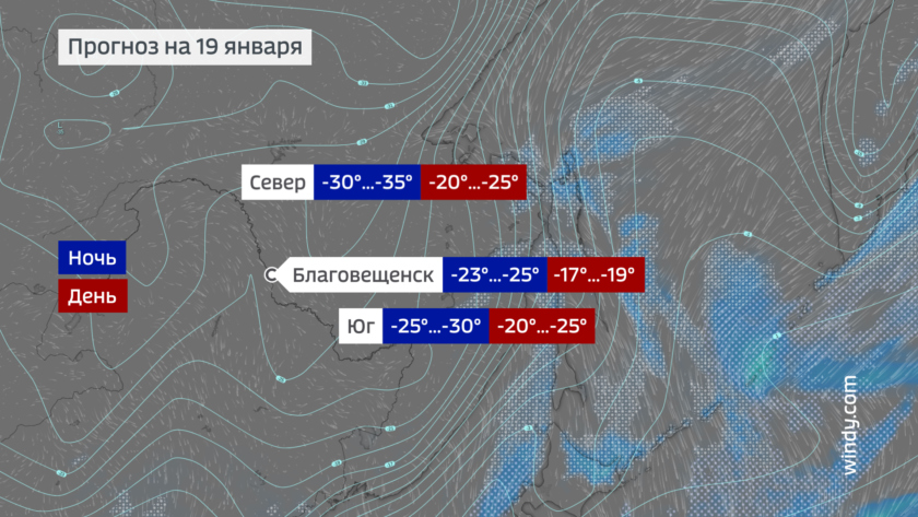 В начале недели сохранится вероятность слабого снега и по-прежнему относительно высокий температурный фон на востоке области. Ночью здесь те же 18-23. В западных районах 21-26 мороза и около 30 градусов на крайнем северо-западе. Днем 17-22 градуса мороза на большей части территории области и 21-26 в Тындинском районе.