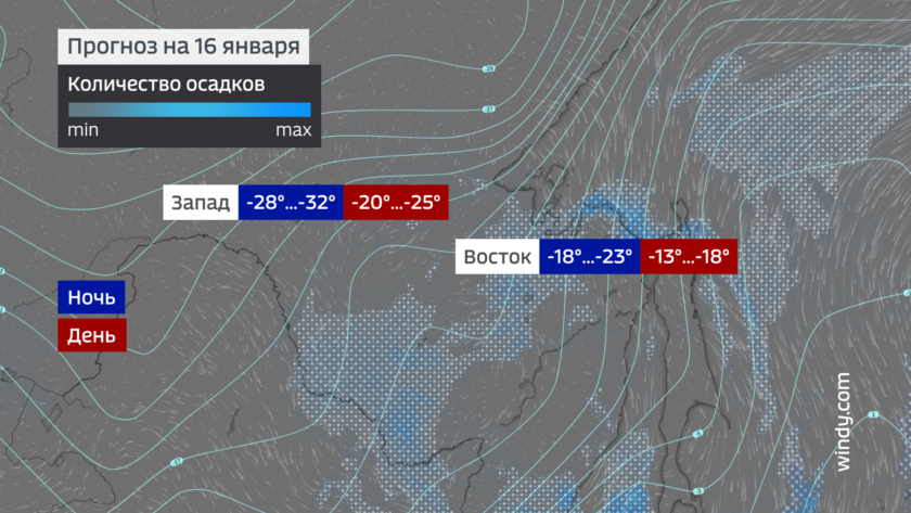 Со вторника сибирский антициклон вновь начет усиливать влияние, и к середине недели ожидается установление стабильной зимней погоды. В ночь на крещение без осадков, температура 25-30 градусов на юге области, 30-35 на севере. Днем 20-25 по всей области и лишь местами по югу около 18.