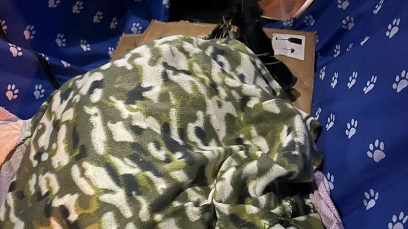 Новость об этом разлетелась по местным пабликам. Молодой человек обнаружил щенка накануне в районе КПП. Он скулил и не мог встать.