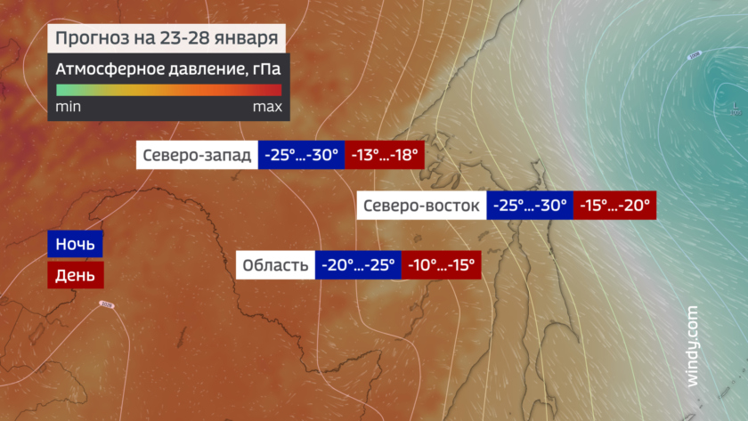 С воскресенья ожидается адвекция тепла и воздух начнет перемешиваться. А это значит что морозы несколько ослабнут. Весь период ночная температура по области 20-25 градусов мороза, в северо-западных и северо-восточный районах 25-30. Днем в воскресенье минус 13 минус 18 на большей части территории и до 23 в крайних северных районах. С понедельника дневные температуры будут выше: 10-15 в южных районах и до 20 в северных.