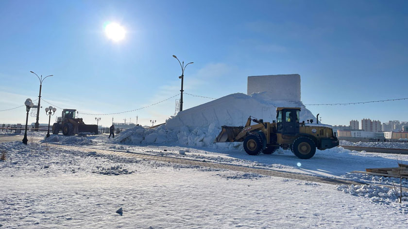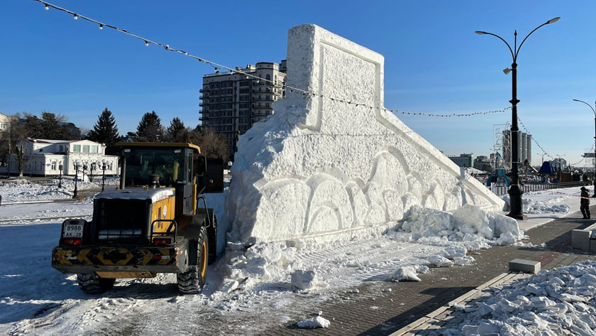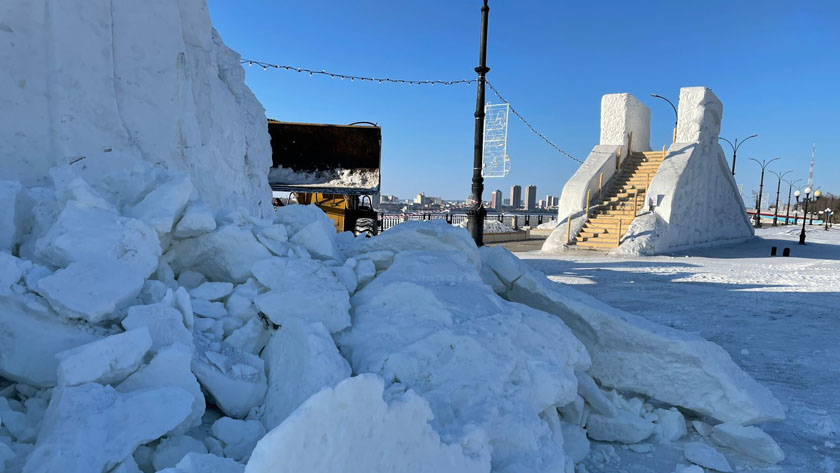 Большие горки на набережной Амура в Благовещенске сегодня начали убирать. Демонтаж в снежных городках областного центра стартовал раньше срока из-за тёплой погоды. Выбоин и неровностей на ледовой поверхности из-за таяния становится всё больше, а подлив водой не приносит нужного эффекта, говорят специалисты.