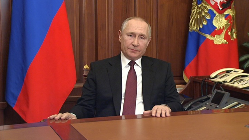 Глава государства выступил с обращением к гражданам РФ. В своём выступлении он объявил о введении российских войск на территории Луганской и Донецкой народных республик.