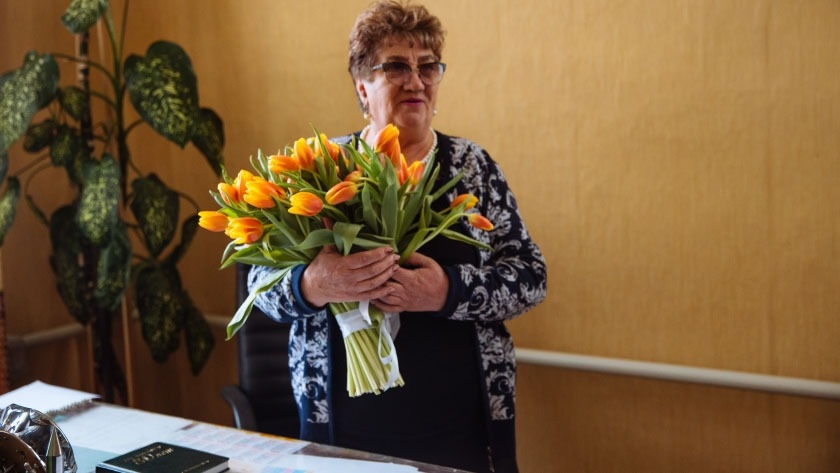 Каждый год в преддверии Международного женского дня губернатор региона поздравляет женщин с необычной профессией. В этом году букет от главы региона получила цеха на Бронетанковом ремонтном заводе в Возжаевке Людмила Сыпало, где она трудится почти 50 лет.