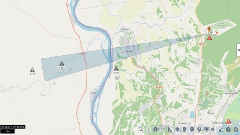 По данным мониторинга системы «Рослесхоз», крупная термоточка зафиксирована в 45 километрах от областного центра Амурской области.