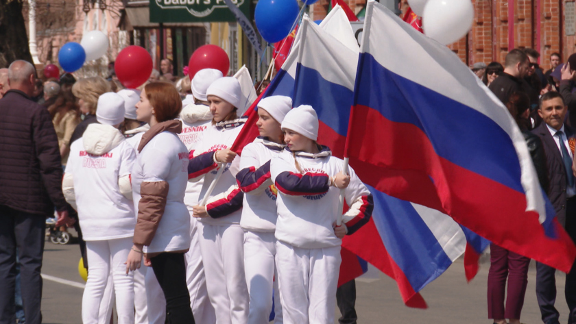 Вообще, у нынешнего Первомая особое патриотическое настроение. Участники вышли с государственными флагами, транспарантами в поддержку Вооруженных Сил России, выступили за мир против нацизма. Только без фашистской нечисти возможны «Мир! Труд! Май!».