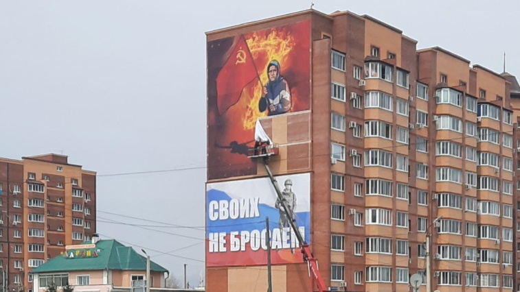 Решение разместить на здании у кольцевой развязки символ спецоперации на Украине приняли жильцы дома.
