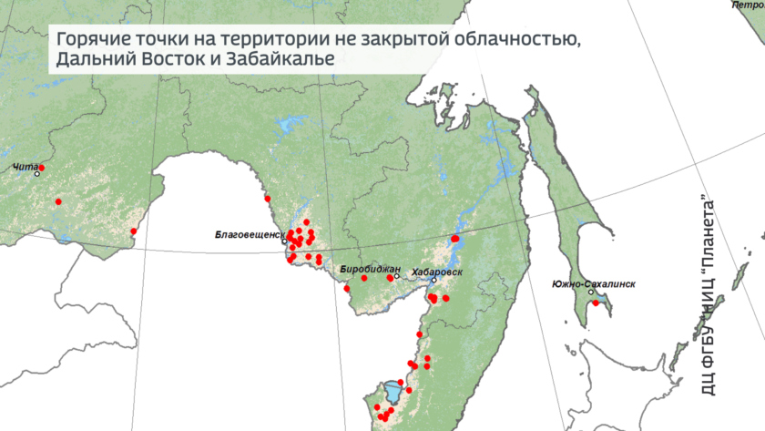 Несмотря на то, что в целом неустойчивую погоду, на большой части территории области высокий класс пожароопасности. По состоянию на 18 мая четвертый (высокий) класс пожароопасности сохраняется в Сковородинском, Магдагачинском, Шимановском районах. Чуть ниже, 3 класс — по всему югу области. На спутниковом снимке вы можете видеть большое количество горячих точек на юге региона. Гидрометцентр вместе с противопожарными службами призывает жителей области к благоразумию. Ведь пожар не начинается от ветра, температуры или сухой травы. Пожары дело исключительно человеческих рук. Трагические события в Сибири говорят о том, что кто-то переоценил свои силы или просто не думал о последствиях своих действий.