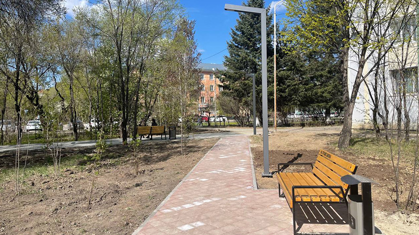 Общественную зону благоустроили между зданиями налоговой и Амурского союза молодежи в районе Красноармейской — Б.Хмельницкого. Над разработкой проекта трудились специалисты Центра развития территорий.