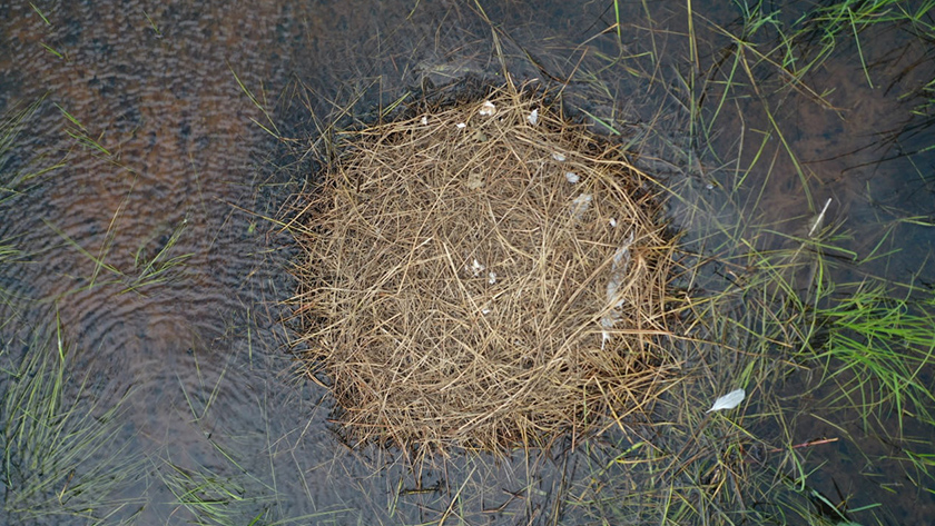Еще неделю назад, 18 числа, дрон заснял как краснокнижница поочередно с самцом высиживали яйцо. После она еще два дня находилась в гнезде, согласно данным ее передатчика. Однако после она покинула насиженное место и улетела за полтора километра от него на кормовой участок. Там птицу вместе с мужем и нашли специалисты в ходе очередной проверки 23 июня. Вот только вместе с родителями птенца не было, а в гнезде остались лишь кусочки скорлупы.