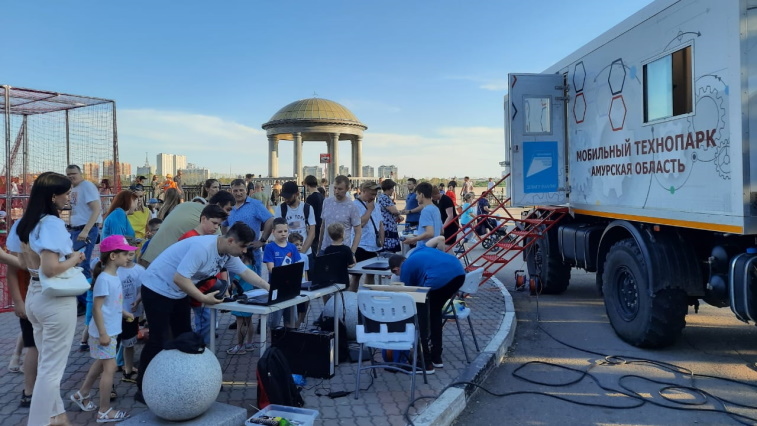 Кроме этого, для горожан на набережной работал квантомобиль, оснащенный необходимым для обучения техническому творчеству. Такие специальные КАМАЗы курсируют по населенным пунктам региона, оказывая дополнительные образовательные услуги юным жителям, сообщает амурский Минобр.