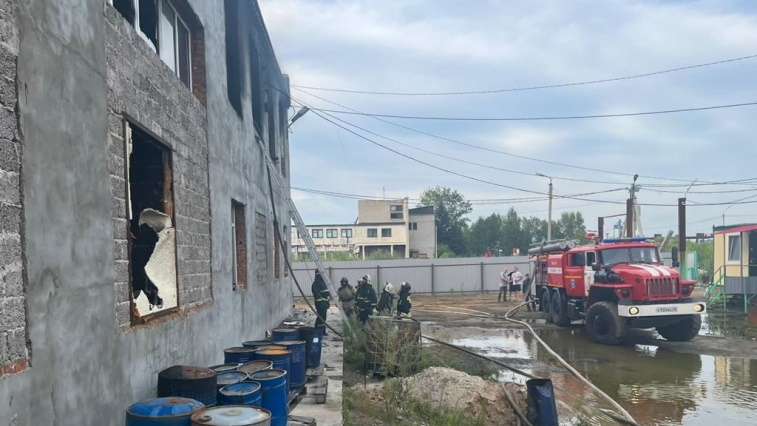 Пожар в недостроенном двухэтажном сооружении на улице Театральной произошел сегодня в районе 18 часов. Огнеборцы прибыли на место спустя семь минут.