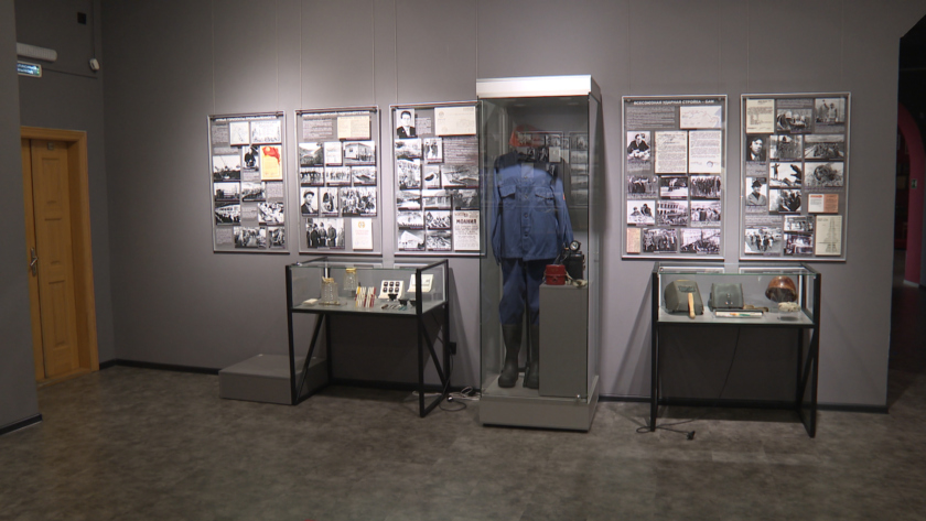 Замеры с точностью до миллиметра: малейшее отступление может нарушить целостность выставки. Планшеты с историческими фотографиями и документами должны быть на одной линии. Опускаешь взгляд ниже — и видишь уже наполненные экспонатами витрины. Здесь и Конституция Страны Советов, датированная октябрем 77-го, и инструменты строителей. В общем, все то, чем жила область во времена СССР. Столетию со дня образования которого и посвящена выставка.
