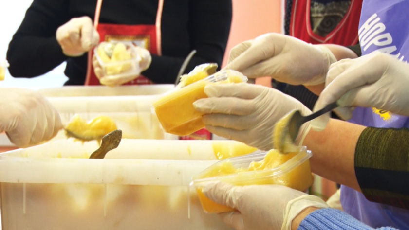 150 килограммов меда для отправки бойцам женсовету безвозмездно предложил благотворитель из Новокиевского Увала. Когда всю партию доставили в Чигири, активистки принялись заботливо ее раскладывать по порциям.
