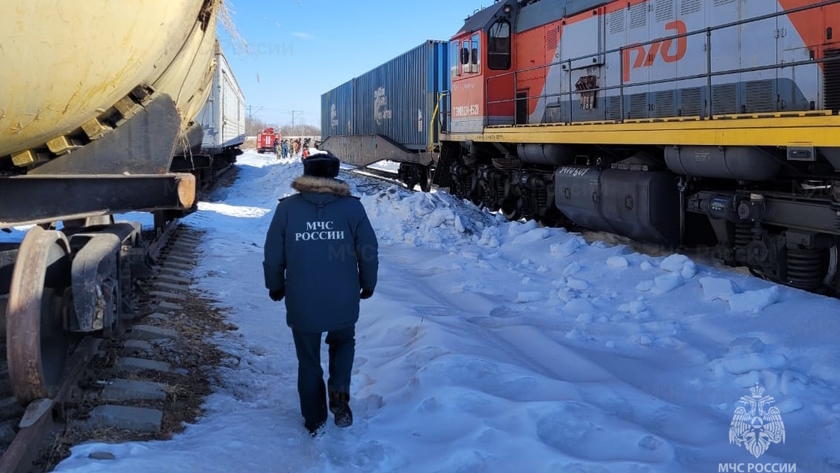 Вагон состава, где находится контейнер с грузом, был отцеплен и отправлен на отдельный путь, сообщает региональное управление МЧС, руководитель которого взял ситуацию на контроль. Уточняется, что состав следовал из Владивостока. Ведется устранение утечки. Представители ДВЖД уточняют, что на движение поездов происшествие не повлияло.
