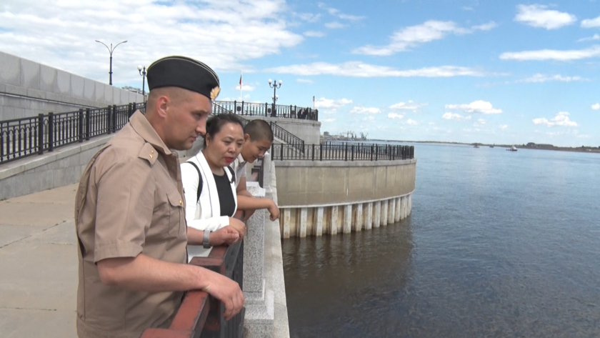 Эта встреча для Виктории особо значима. Ведь пограничники спасли ее сына. Все произошло 13 июня. Вова вместе с друзьями прогуливался по берегу Амура. Когда одна из девочек обронила в воду православный крест, двое ребят начали поиск, но внезапно их зацепило волной и снесло течением.