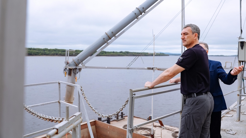 Губернатор во время рабочей поездки в Михайловский район оценил работу по отгрузке зерна и сои на экспорт с Поярковского элеватора, где в 2020 году возвели причал и обновили пункт пропуска для грузов и пассажиров.