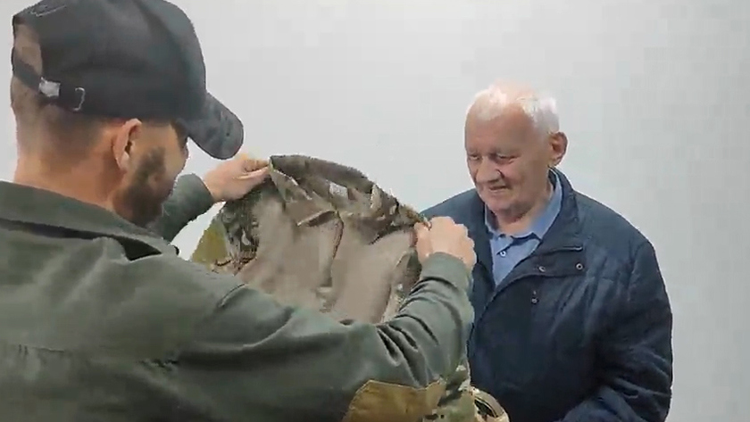 Боец встретился с пенсионером, который отдал свой автомобиль на передовую, и передал подарки от батальона.
