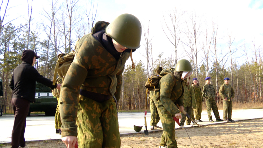«Сейчас мы были на этапе, где мы искали мины. Мы надели маскировочные костюмы, взяли рюкзаки с собой, проползли определённое расстояние и искали мины», — рассказывает Дарья.